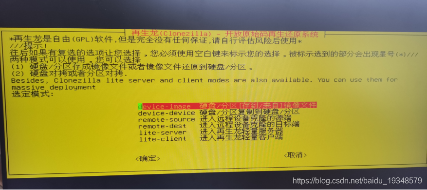 利用制作好的再生龙恢复U盘,我们可以备份linux系统,然后进行快速的克隆安装。