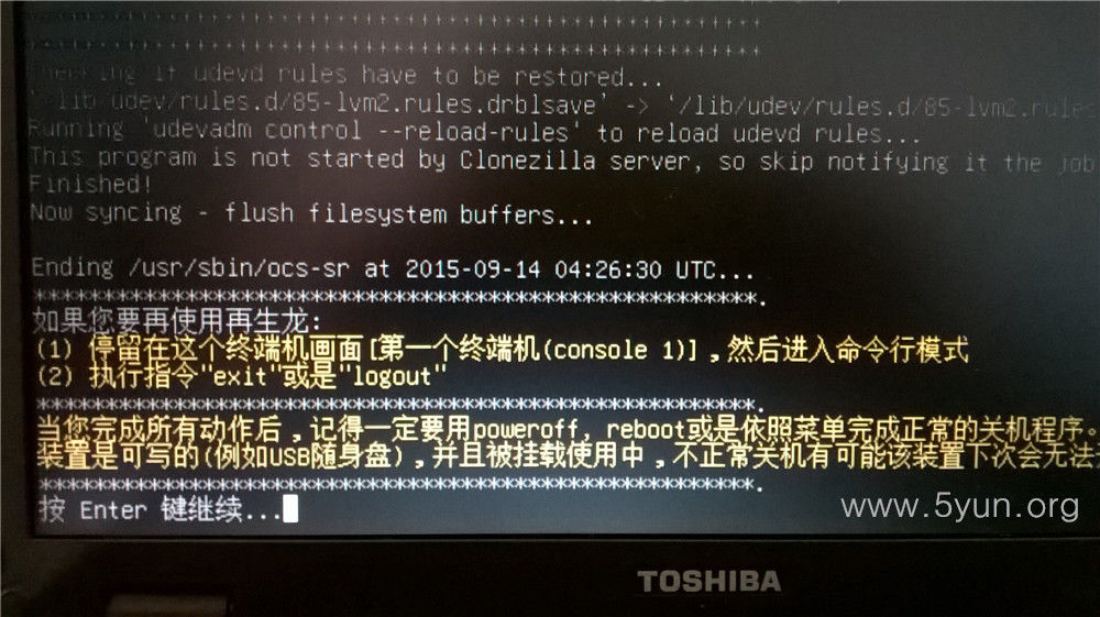这个时候插入另一个u盘,这个u盘应该访问备份的linux镜像文件,还原的时候就从这个u盘上面读取备份数据;