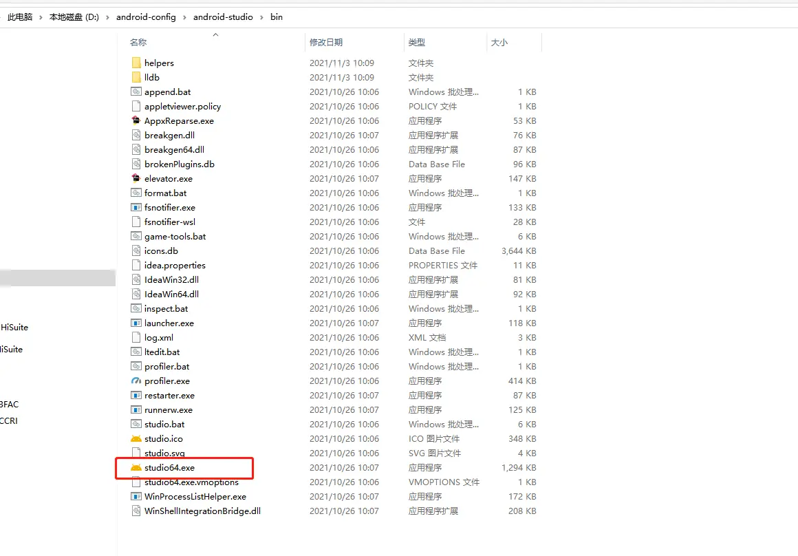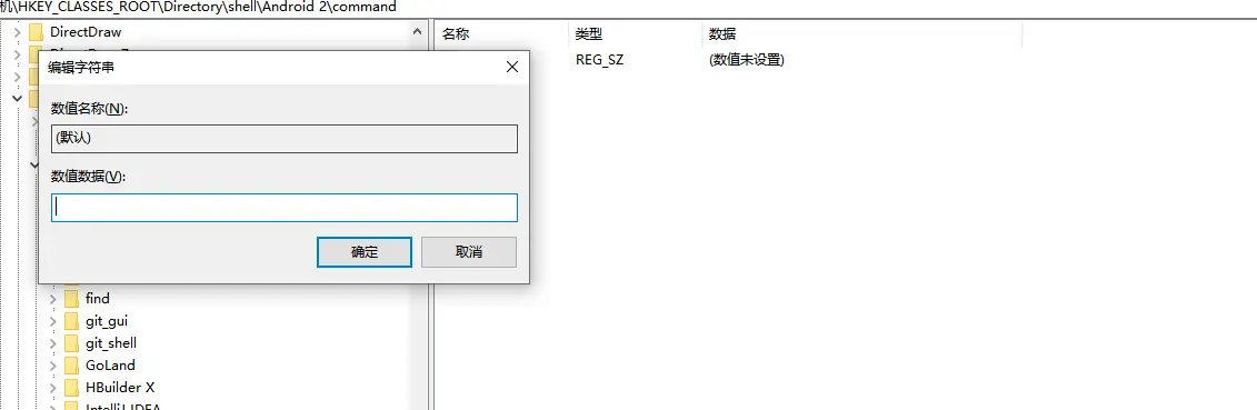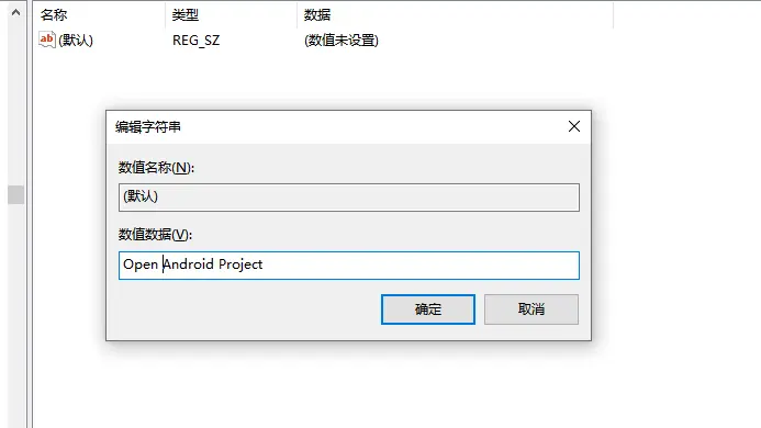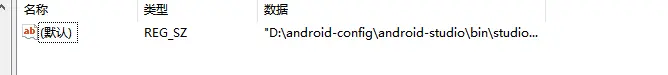 然后将command项的右边的数值改为"D:\android-config\android-studio\bin\studio64.exe" “%V”,软件安装的具体路径要按照各自的路径来