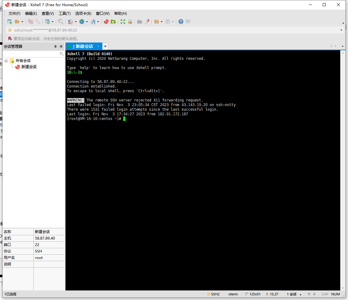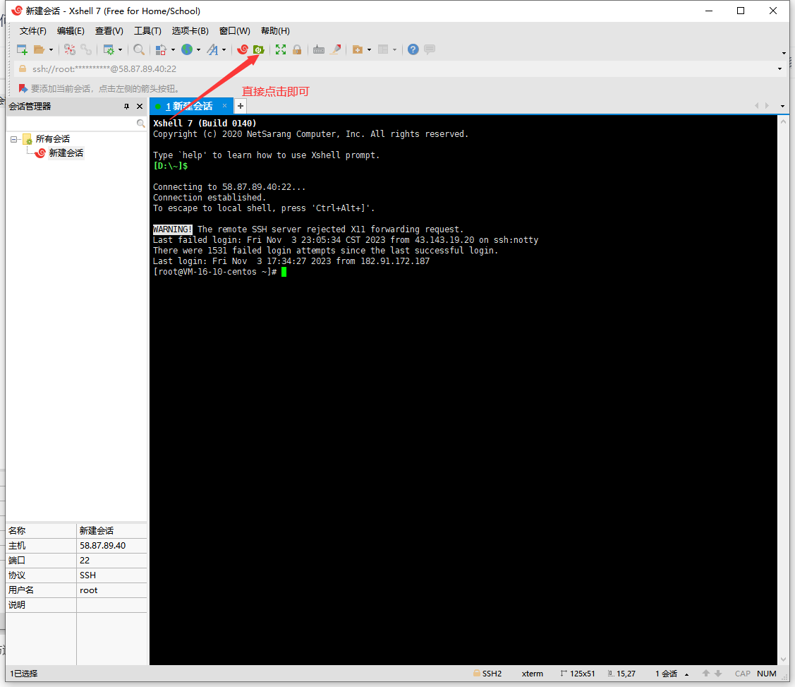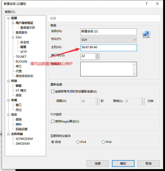 ① 在弹出的界面中点击新建会话,按下图填写相应的信息即可