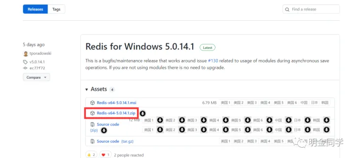 这里我在GitHub中下载window用的 5.0 版本Redis-x64-5.0.14.1.zip。