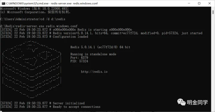 在Redis的安装目录下打开cmd窗口,然后执行命令来启动服务: