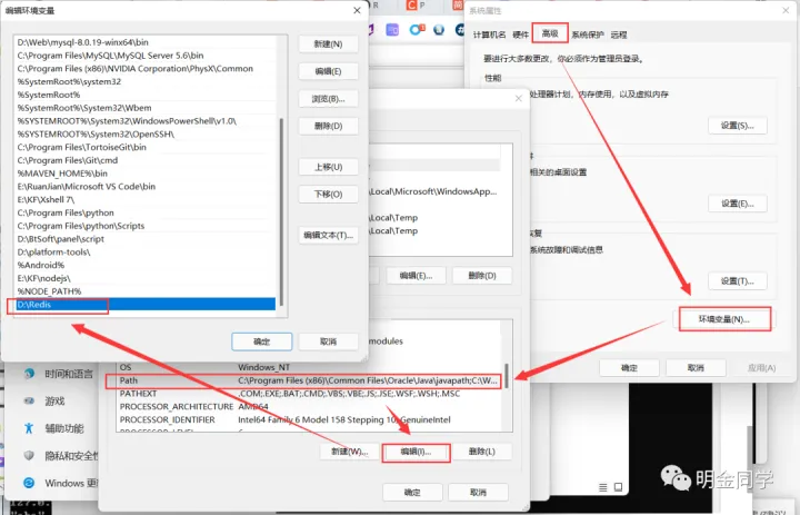 为了方便,建议把Redis路径配置到系统变量Path值中,这样就省得再输路径了。