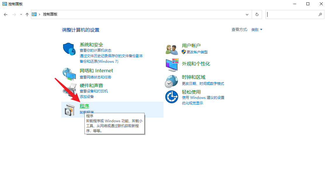 在控制面板打开程序 ,然后点击启动或关闭windows功能