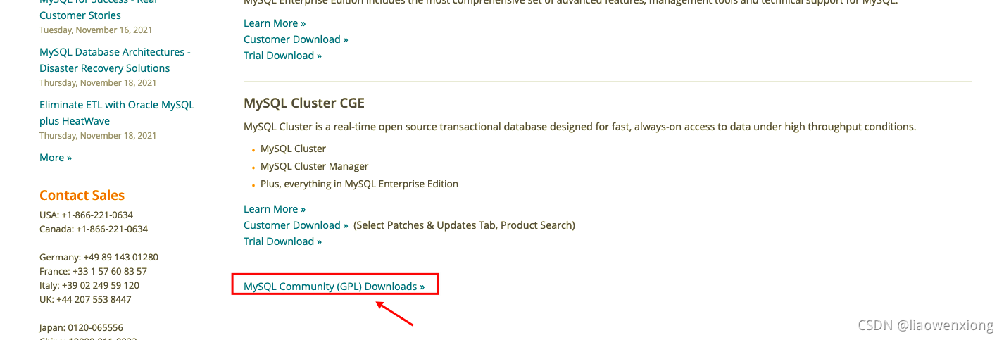 2.点击 DOWNLOADS,把页面滚动到最下面,点击 MySQL Community (GPL) Downloads