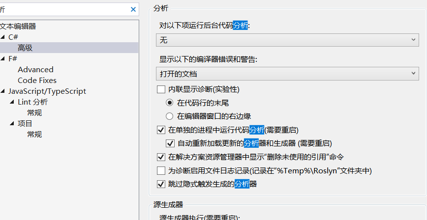 3、关闭解决方案实时代码分析