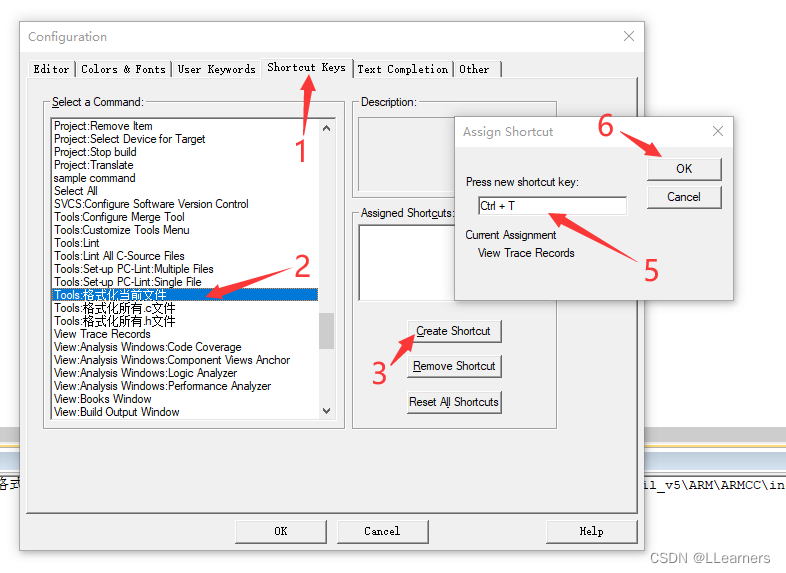 2.按照如图的方式设置。图中第5步使用直接输入自己的命令。如:Ctrl + T