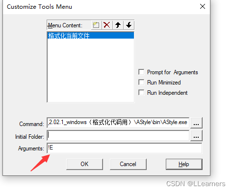 keil(MDK)中加载工具 Astyle(格式化当前文件工具设置)